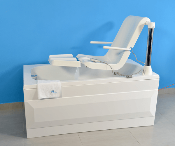La vasca da bagno motorizzata Torre ha un sollevatore che funziona con comando manuale che permette di poter entrare ed uscire dalla vasca con massima facilità e sicurezza.